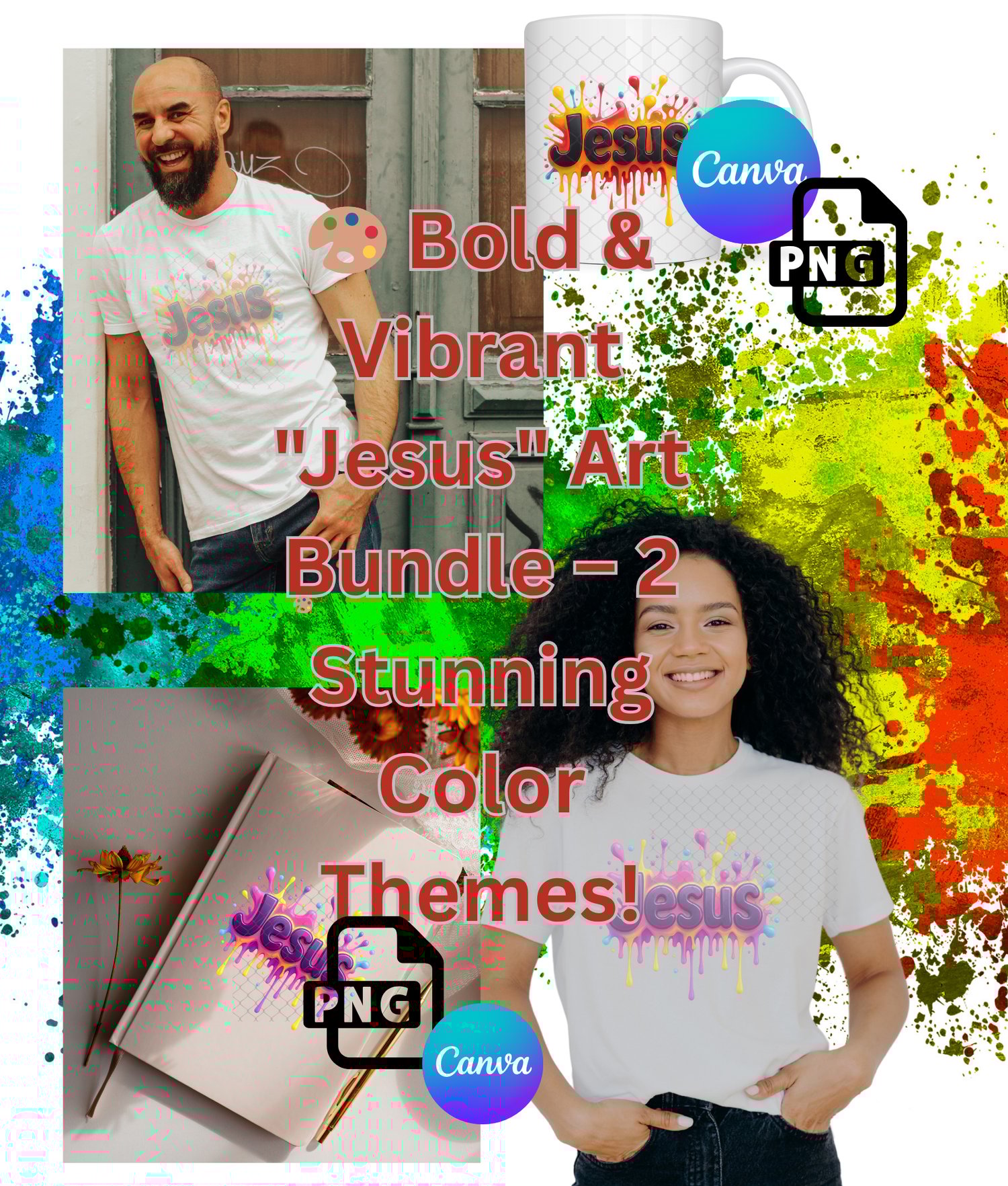 🎨 Bold & Vibrant "Jesus" Art Bundle – 2 Stunning Color Themes!